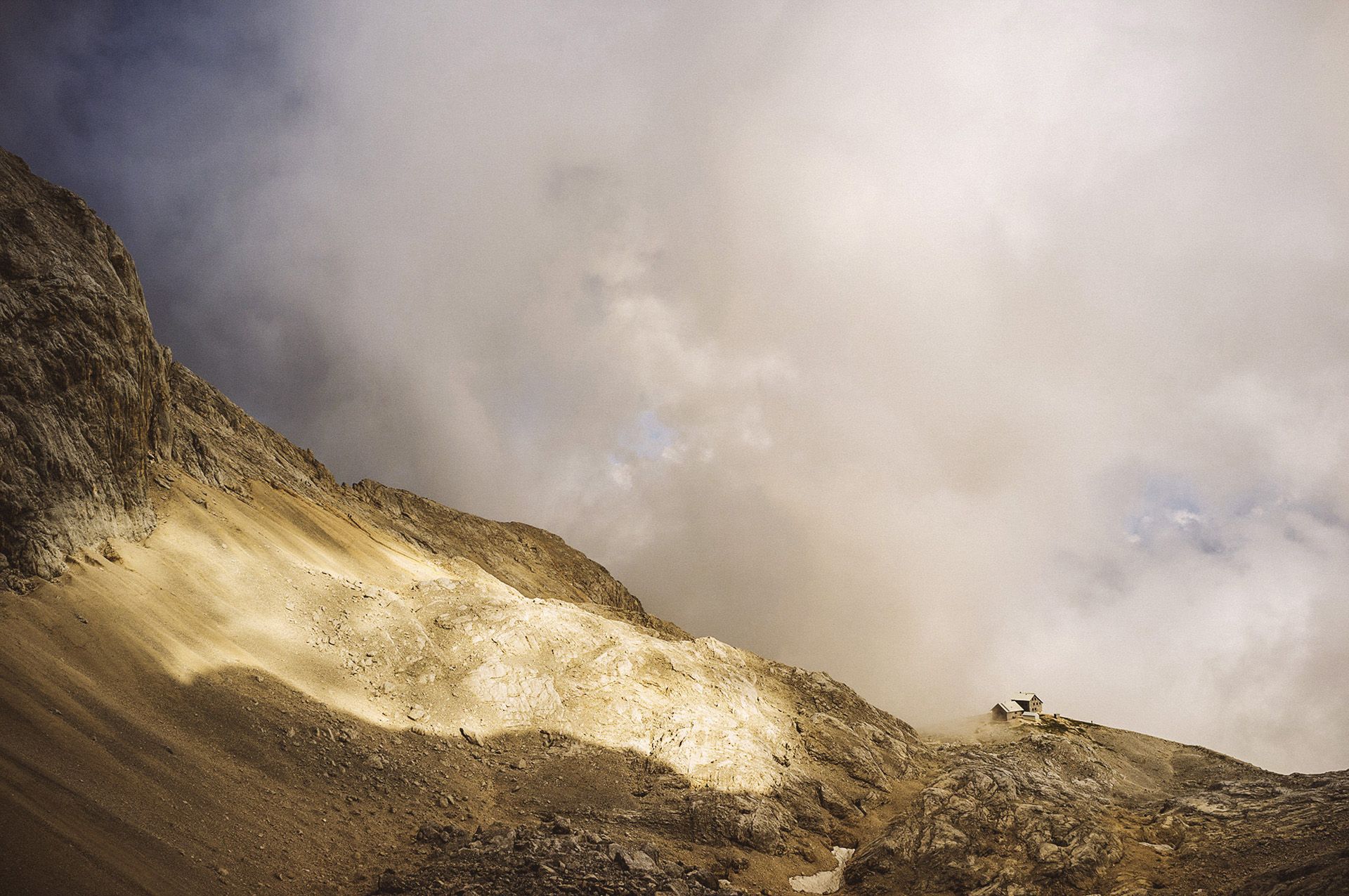 Oko nas je samo krupni pijesak i kamenje i nekakav koziji putić kojim trebali hodati. Od nedostatka zraka više ne komuniciramo već samo hodamo u nadi da smo na pravom putu i zaista nakon cca 40 min uočavamo planinarsku kuću i cijelo more ljudi u daljini.