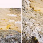 Sjedam na “pod“ i spuštam se, i dalje kližući, prema podnožju planine. Umor je napravio svoje pa noge obijaju poslušnost. Za svaki pojedini korak treba dvaput provjerit uporište, a na najstrmijim djelovima zapravo većinom visimo na sajlama i klinovima i molimo se da će nam se pod nogama naći tvrdi komadić stijene koji se neće odlomiti u trenutku kada prebacimo djelić težine na njega.
