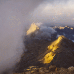 Nakon izvjesnog vremena uočavam vrh tornja i siluetu zastave, Aljažev stup, no odbijam se radovati jer od oblaka na koji sunce baca moju sjenu, nikako ne mogu procijeniti udaljenost.