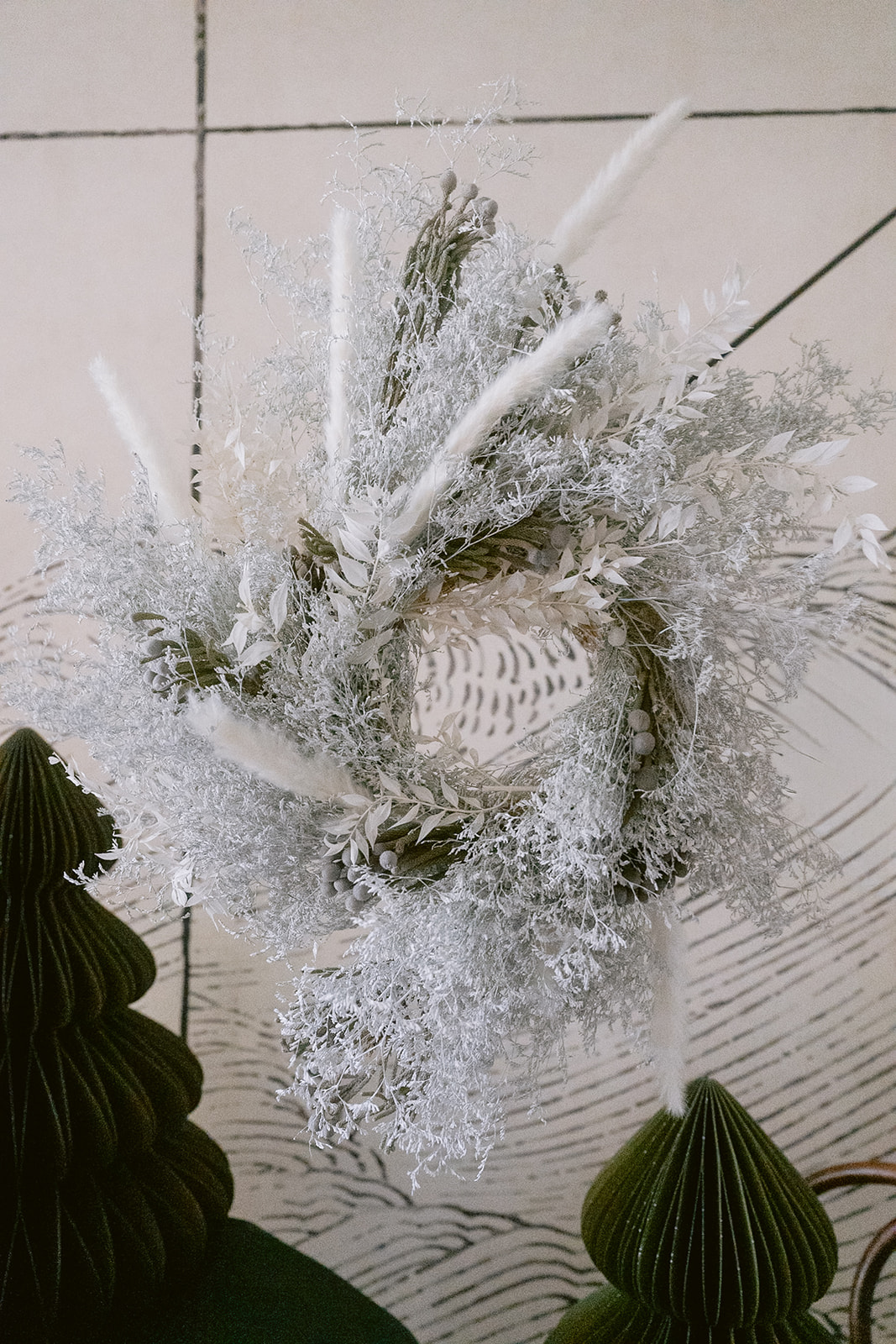 Takve su i ovih blagdana. Dominantni su papirnati sklopivi borovi koje možete nabaviti u njezinom concept storeu na Vrbiku, kao i vjenčići i buketići od raznog suhog i dehidriranog cvijeća. Najbolje od svega je što u proljeće ili u jesen možete Nini ponovno odnijeti aranžman ili vjenčić i ona će ga pretvoriti u proljetnu ili jesensku instalaciju. Na taj način uvijek možete uživati u nečem novom…