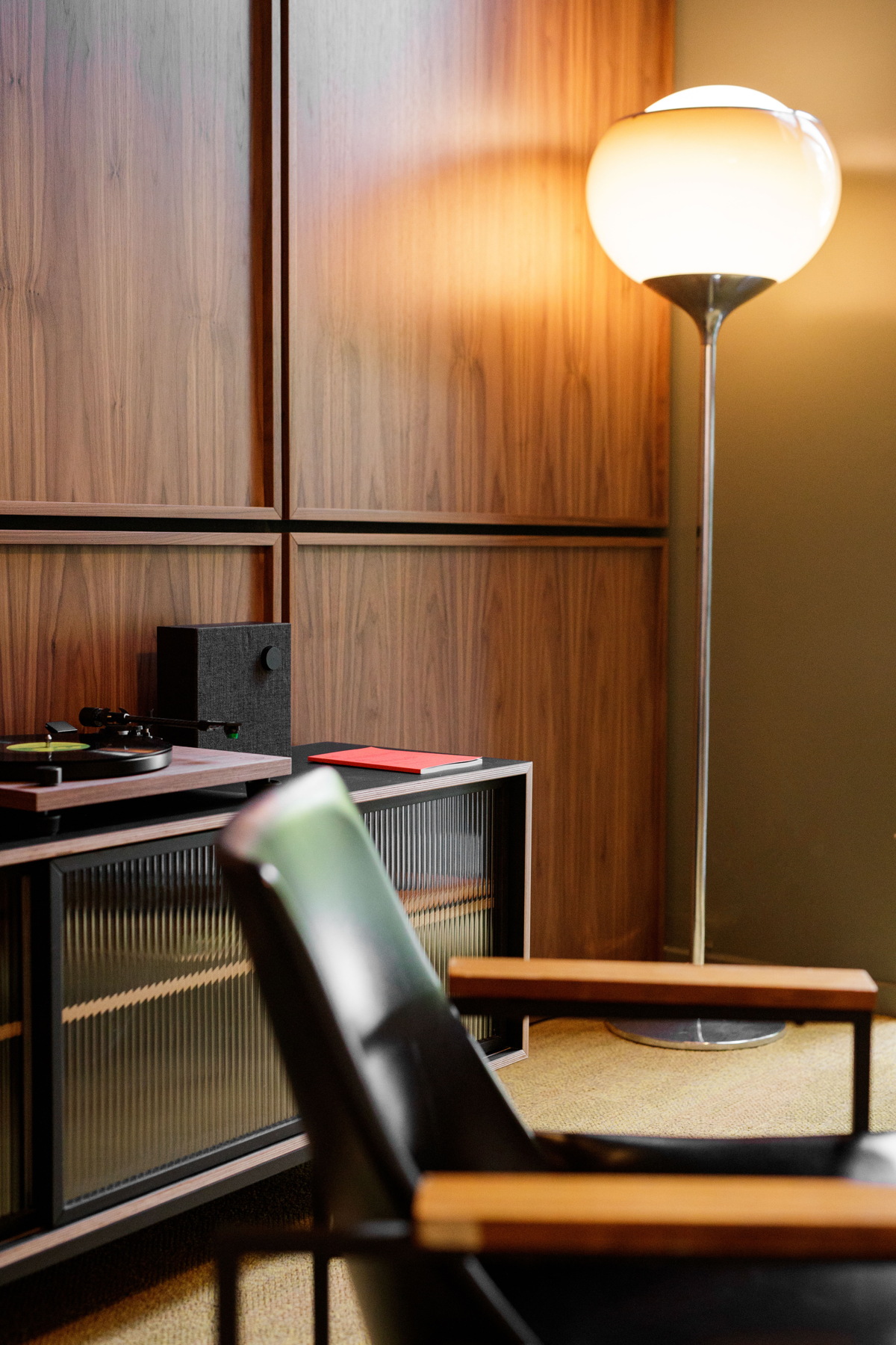 Kombinacijom originalnog dizajnerskog namještaja iz tog vremena, stolića i komode koje su razvili dizajneri u Brigadi te novih materijala, uz zvuke ploča s drvenog gramofona održavaju se manje formalni sastanci ili jednostavno završava radni dan uz pogled na zelenilo parka.