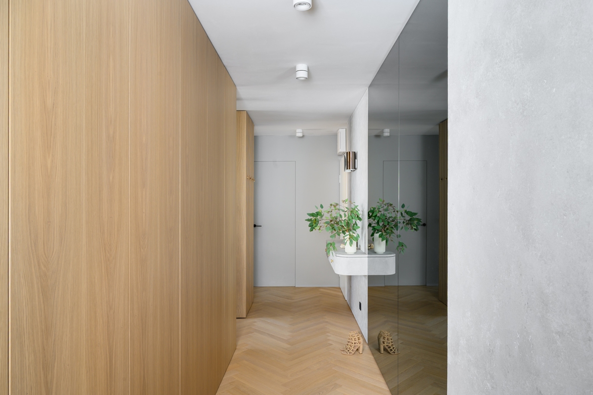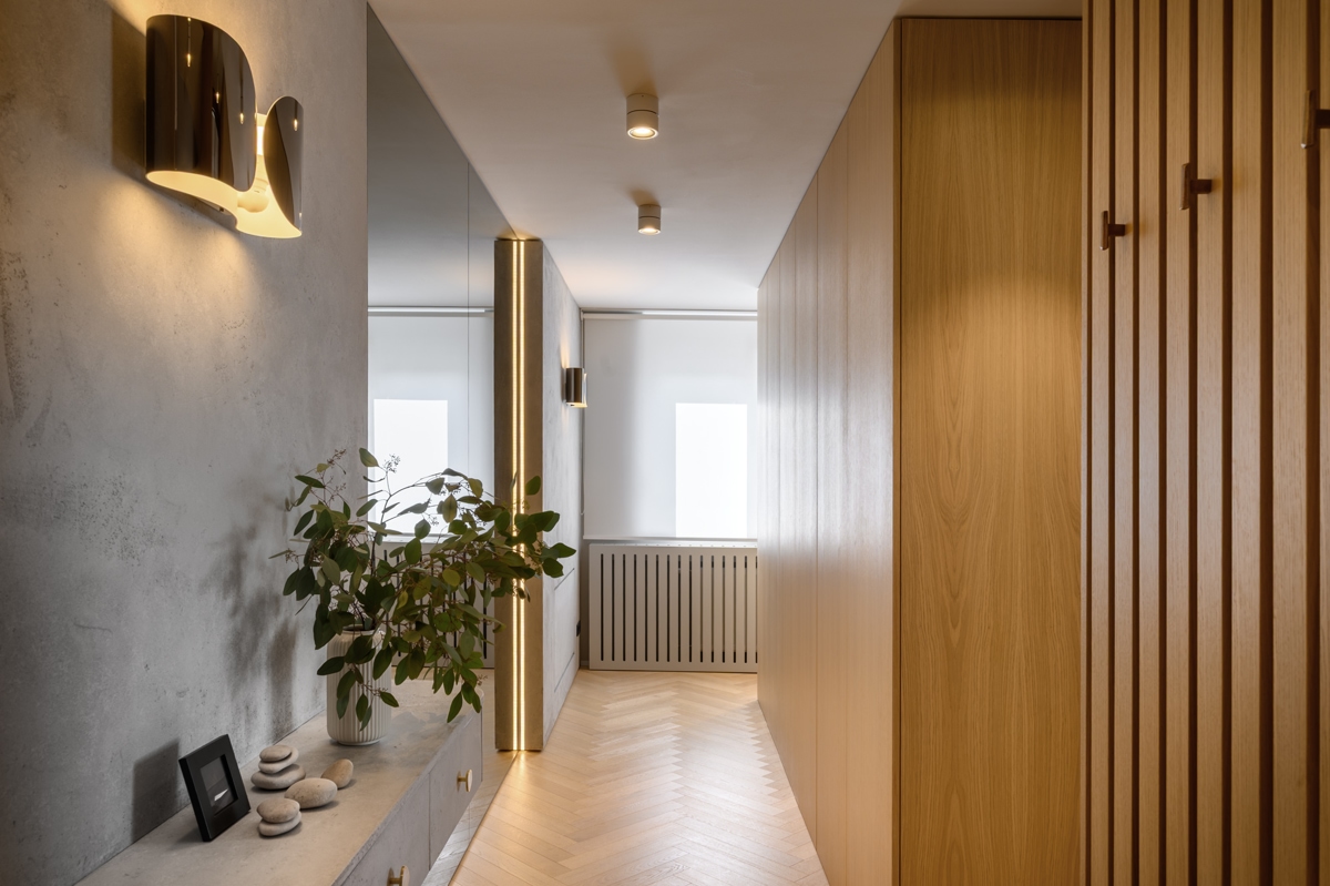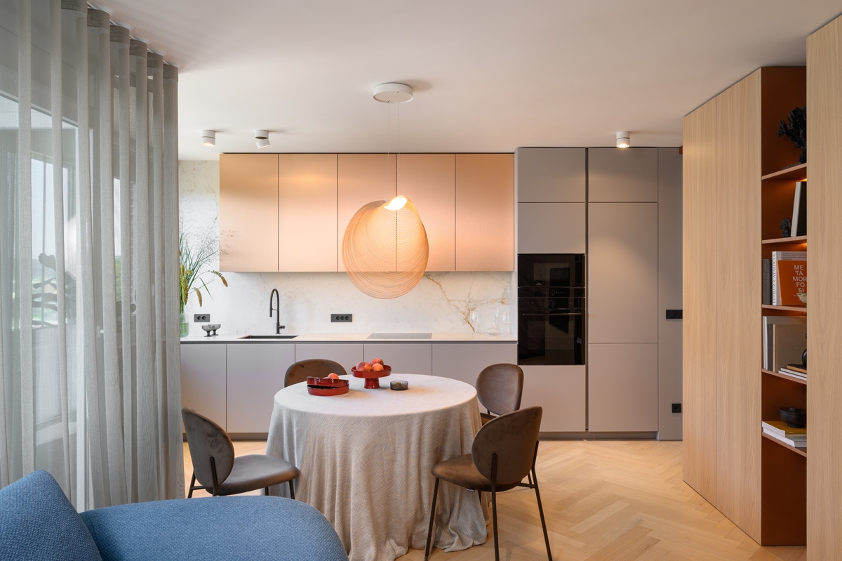 – Polazište pri osmišljavanju stana za dinamičan par bila je potpuna preobrazba postojećeg tlocrta i prostorne logike. Potpuno smo promijenili raspored prostorija i volumena te stvoren je interijer koji spaja funkcionalnost, estetsku profinjenost i jasnu arhitektonsku strukturu.