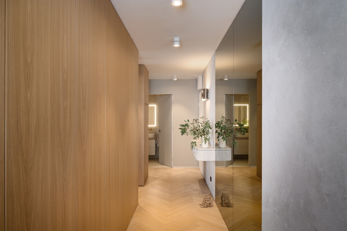 – Polazište pri osmišljavanju stana za dinamičan par bila je potpuna preobrazba postojećeg tlocrta i prostorne logike. Potpuno smo promijenili raspored prostorija i volumena te stvoren je interijer koji spaja funkcionalnost, estetsku profinjenost i jasnu arhitektonsku strukturu.