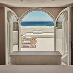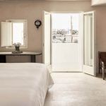 U Tarini gosti mogu uživati u pogledu na vrt, a na prostranoj se terasi, uz ležaljke, nalazi i privatan bazen. Plavi jastuci i prljavo bijela boja zidova, kombinacija koja jednostavno viče: “Santorini”.