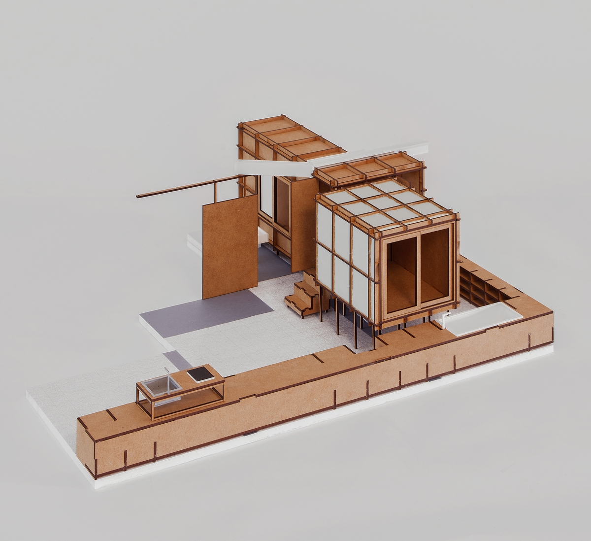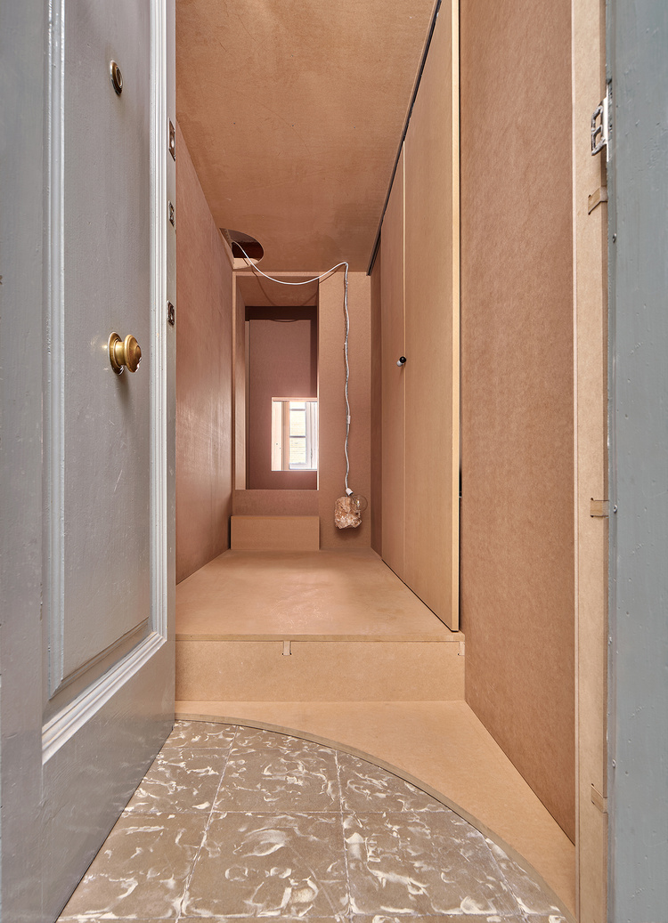 Izgrađen u potpunosti na licu mjesta suhom gradnjom, stan mogu sastaviti i nestručnjaci – uključujući i klijenta – preoblikujući obnovu kao suradničku, niskotehnološku i klimatski osviještenu praksu za pristupačan život. Konstrukcijski i pregradni elementi su prefabricirani CNC tehnologijom i montirani pomoću standardnih vijaka. Materijali su odabrani zbog isplativosti, održivosti i dostupnosti: standardne MDF ploče za konstrukciju i oblogu, te lokalno nabavljena ovčja vuna za izolaciju.
