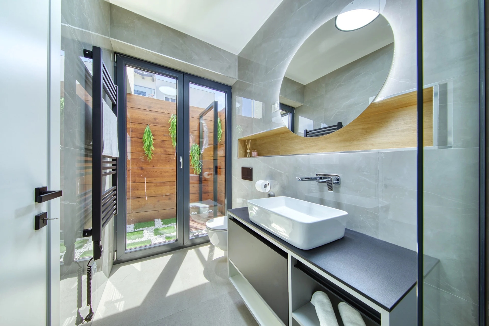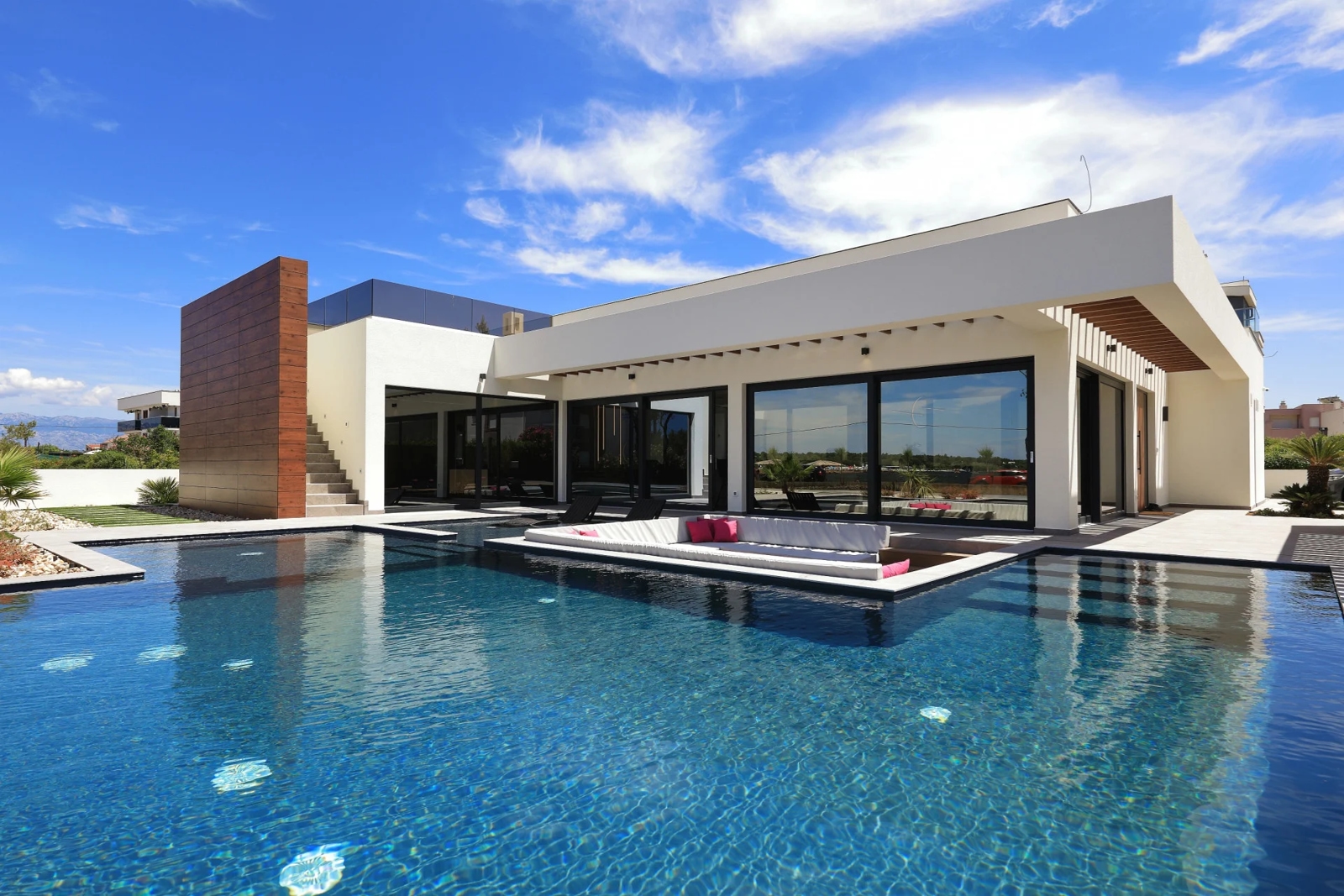 boravak je topao i udoban s prekrasnim vrtom okruženim staklenim stijenama dok je krovna terasa jednako očaravajuća. Bazen je hidromasažni i grijan, idealan za