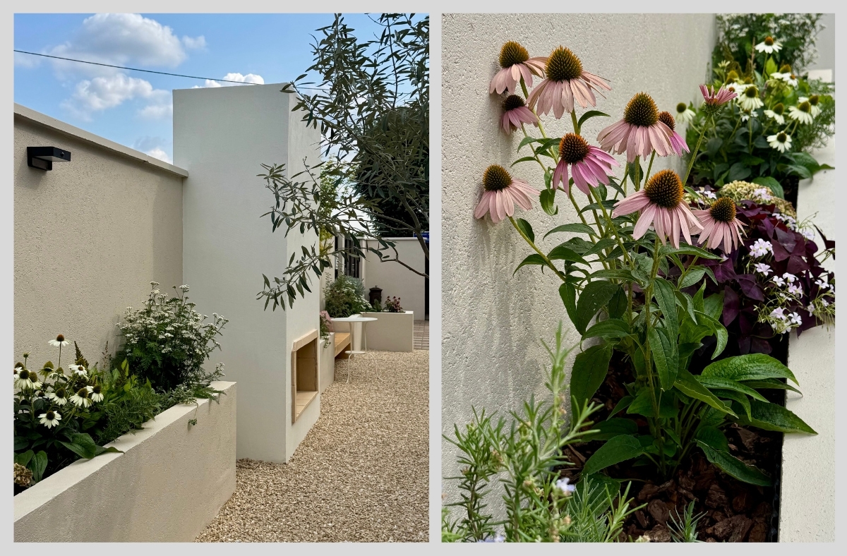 Ingrid: S obzirom da je ranije vrt bio gotovo cijeli zelen ovog puta sam imala želju da biljkama unesem boje. Birala sam ih prema mjesecima u kojim cvatu i boji. Što se tiče orijentacije ni jedan dio vrta nema dugo sunca. Znala sam da će svaka trajnica ili malo stablo koje odaberem dobro uspjeti jer uvjeti su idealni; ima sunca ali ne previše ili cijeli dan. To se pokazalo točnim jer one su već nakon 2 tjedna transformirale cijelo dvorište. Volim pogled iz kuće prema van upravo zbog dinamičnosti koje one daju.