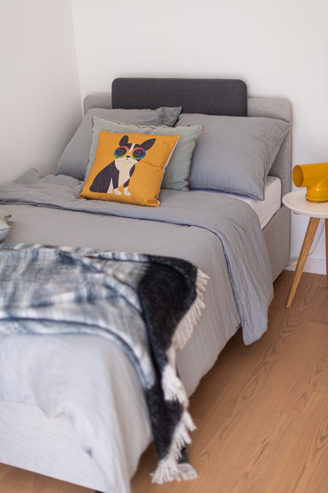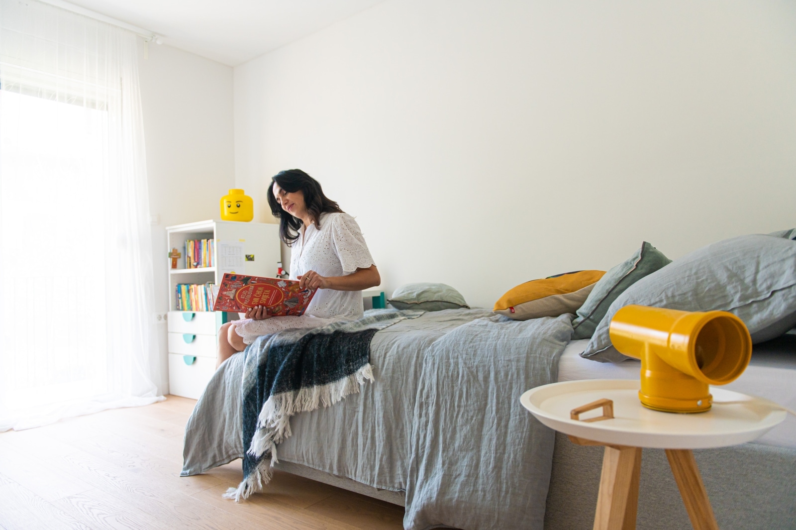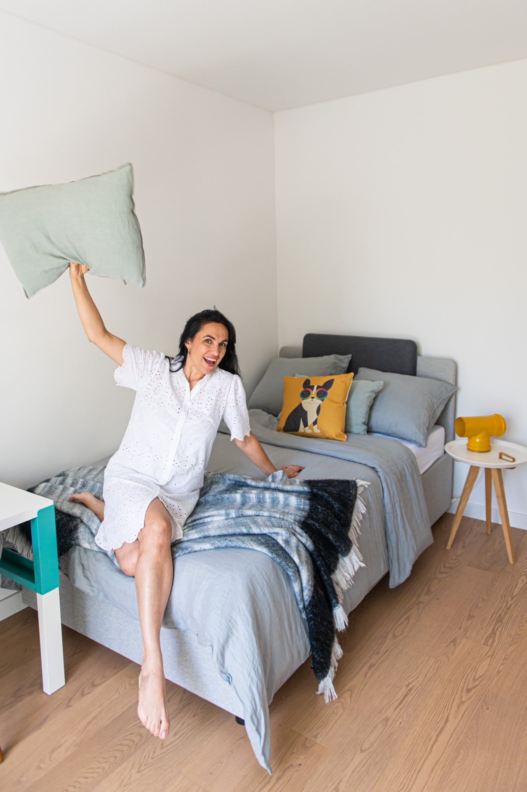 Za odabir svih detalja, posteljine, noćnog ormarića koji je zapravo stolić za kavu (ali se savršeno uklopio u ovu kombinaciju), opet je zadužena Boba. Ja ne znam što bih bez njene pomoći. I sve je to složila u HESPO salonu i dopunila detaljima s njihovog weba. Ona je sugerirala i da uzmemo ovaj krevet, koji možda jest privremeno rješenje za Andriju. Ali kada Andriji bude potreban čvrsti veliki krevet sa madracem koji je dobra potpora odraslima i njihovim dimenzijama i težini, ovaj krevet može naslijediti Jakov. A meni je jako važan taj moment održivosti, i što manjeg gomilanja stvari te nepotrebnog stvaranja otpada. Tako da je ovo bilo izvrsno rješenje.