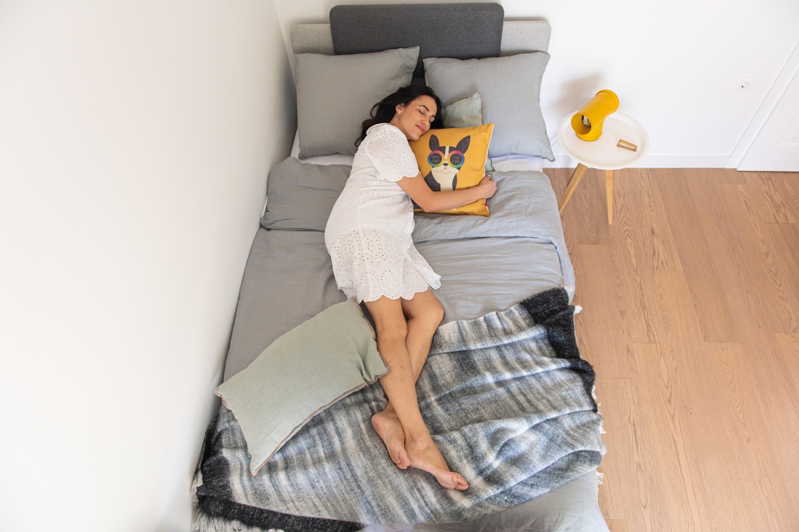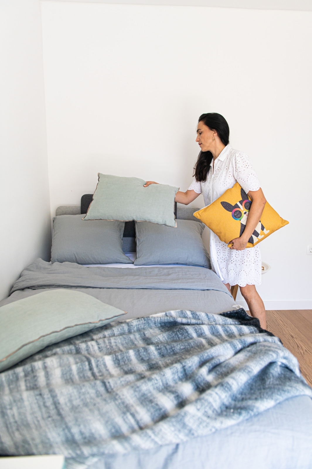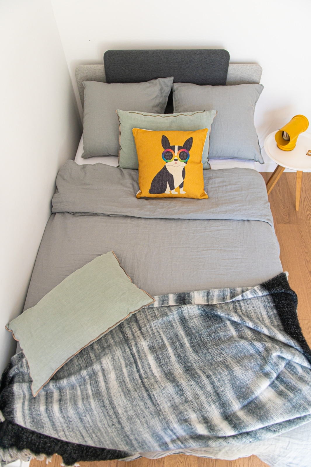 Za odabir svih detalja, posteljine, noćnog ormarića koji je zapravo stolić za kavu (ali se savršeno uklopio u ovu kombinaciju), opet je zadužena Boba. Ja ne znam što bih bez njene pomoći. I sve je to složila u HESPO salonu i dopunila detaljima s njihovog weba. Ona je sugerirala i da uzmemo ovaj krevet, koji možda jest privremeno rješenje za Andriju. Ali kada Andriji bude potreban čvrsti veliki krevet sa madracem koji je dobra potpora odraslima i njihovim dimenzijama i težini, ovaj krevet može naslijediti Jakov. A meni je jako važan taj moment održivosti, i što manjeg gomilanja stvari te nepotrebnog stvaranja otpada. Tako da je ovo bilo izvrsno rješenje.
