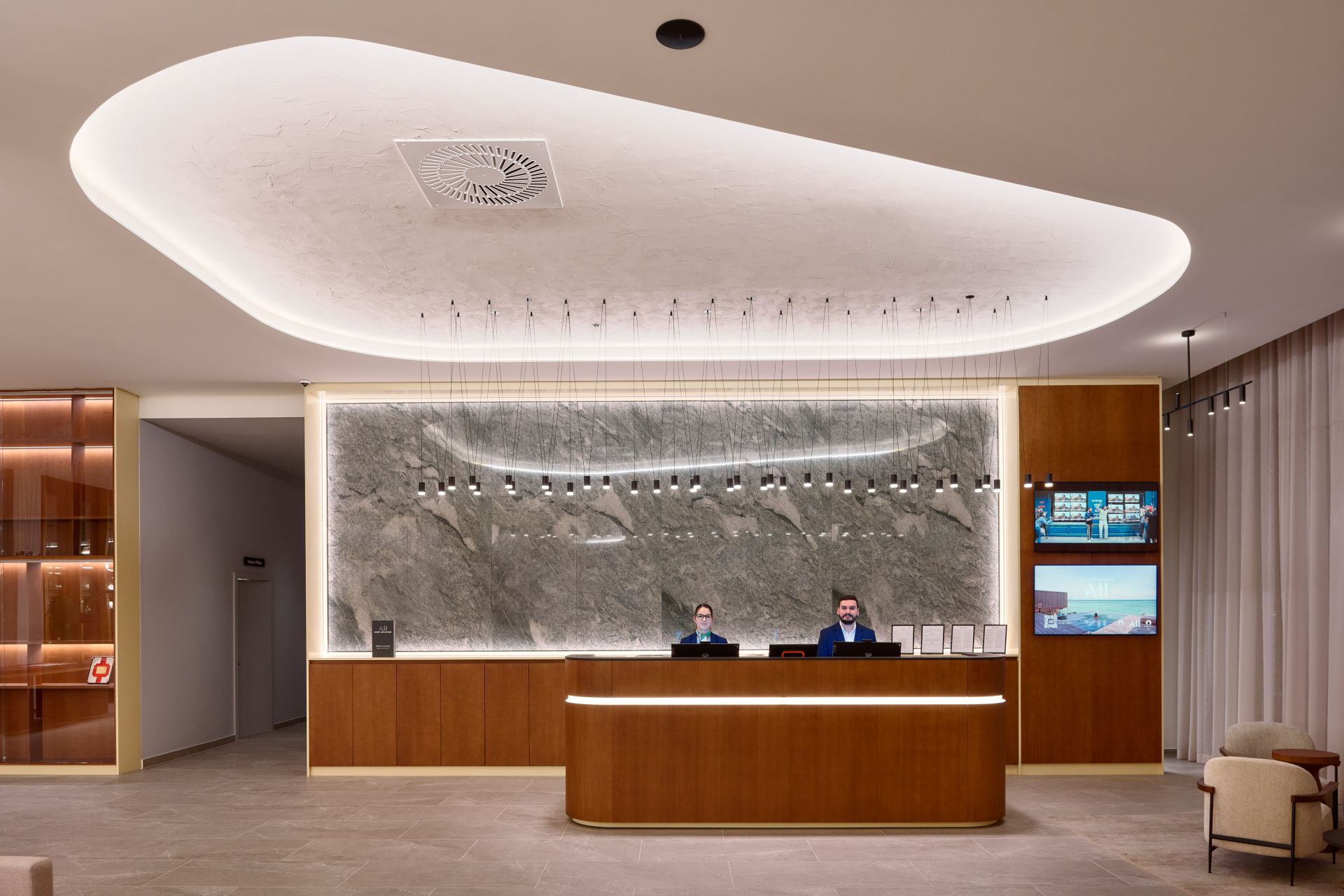 Interijer hotela, ispunjen prirodnim materijalima i zemljanim tonovima, stvara opuštenu i ugodnu atmosferu.