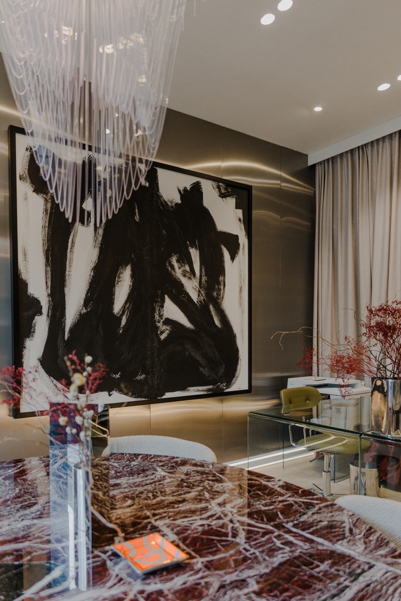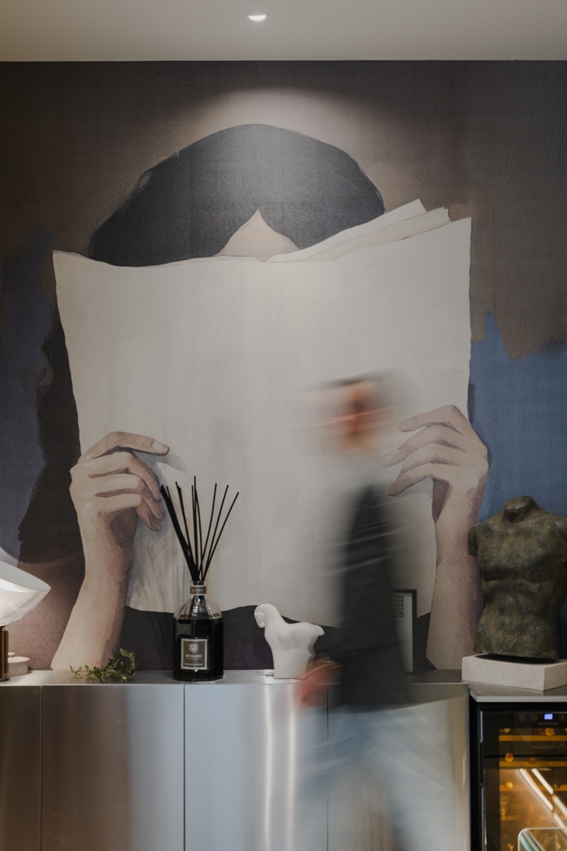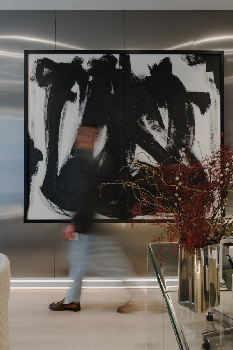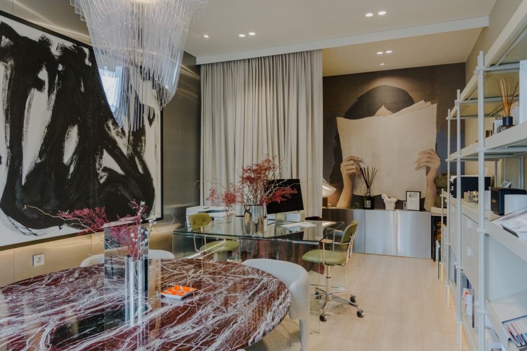 – Zidovi studija kriju priču o lojalnosti i sinergiji. Tu su specifične zidne tehnike, zid u brušenom inoxu i tapete nastale u suradnji s renomiranim hrvatskim tvrtkama s kojima surađujem od prvog dana. Cijelu priču zaokruže autorsko djelo Jane, dizajnerice i moje bliske poslovne partnerice čija djela često koristim u projektima – kaže Ivan dodajući kako je njegov ured ujedno i  showroom gdje klijenti, dok ispijaju kavu na sastancima, mogu osjetiti teksture i materijale koji će sutra postati dio njihovog svakodnevnog luksuza.