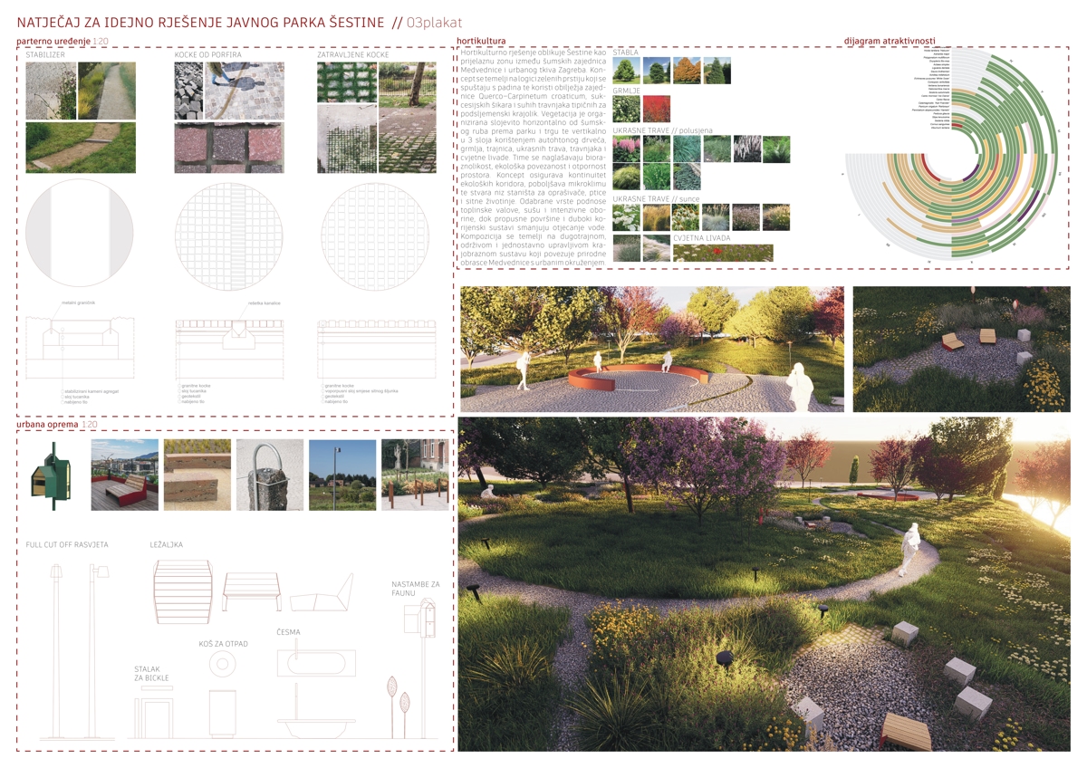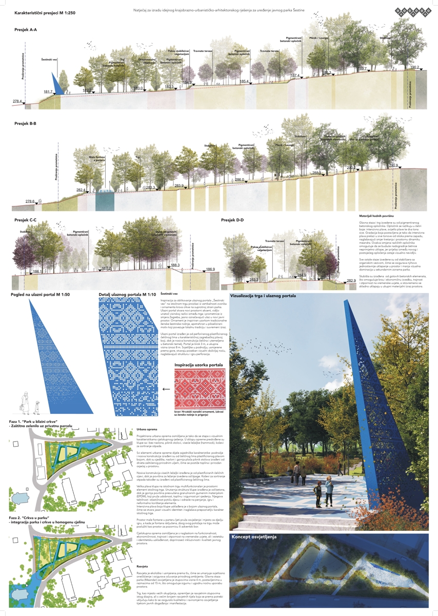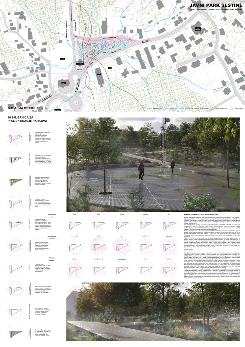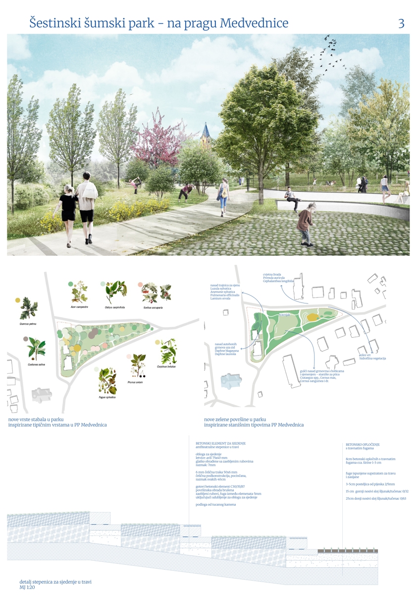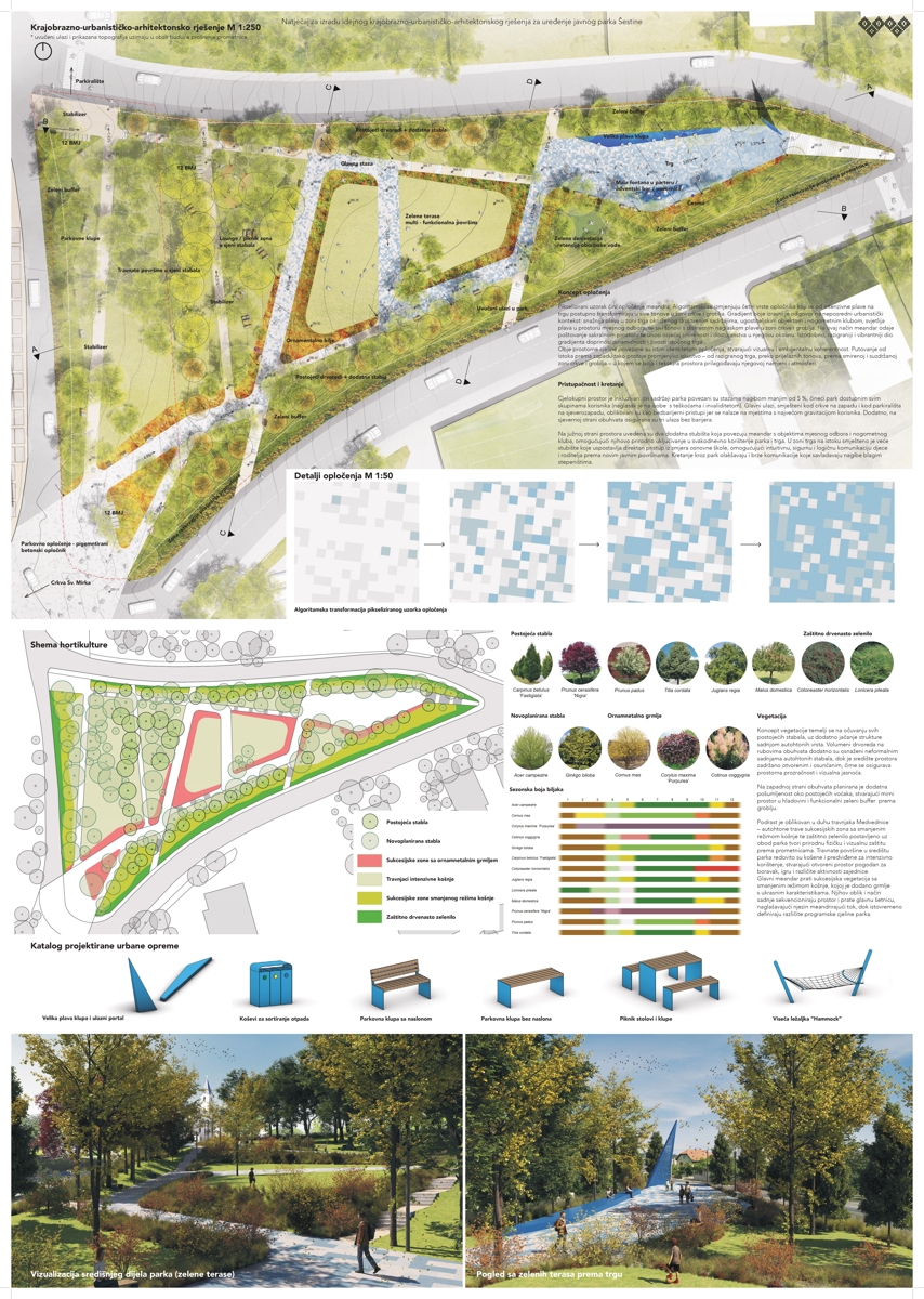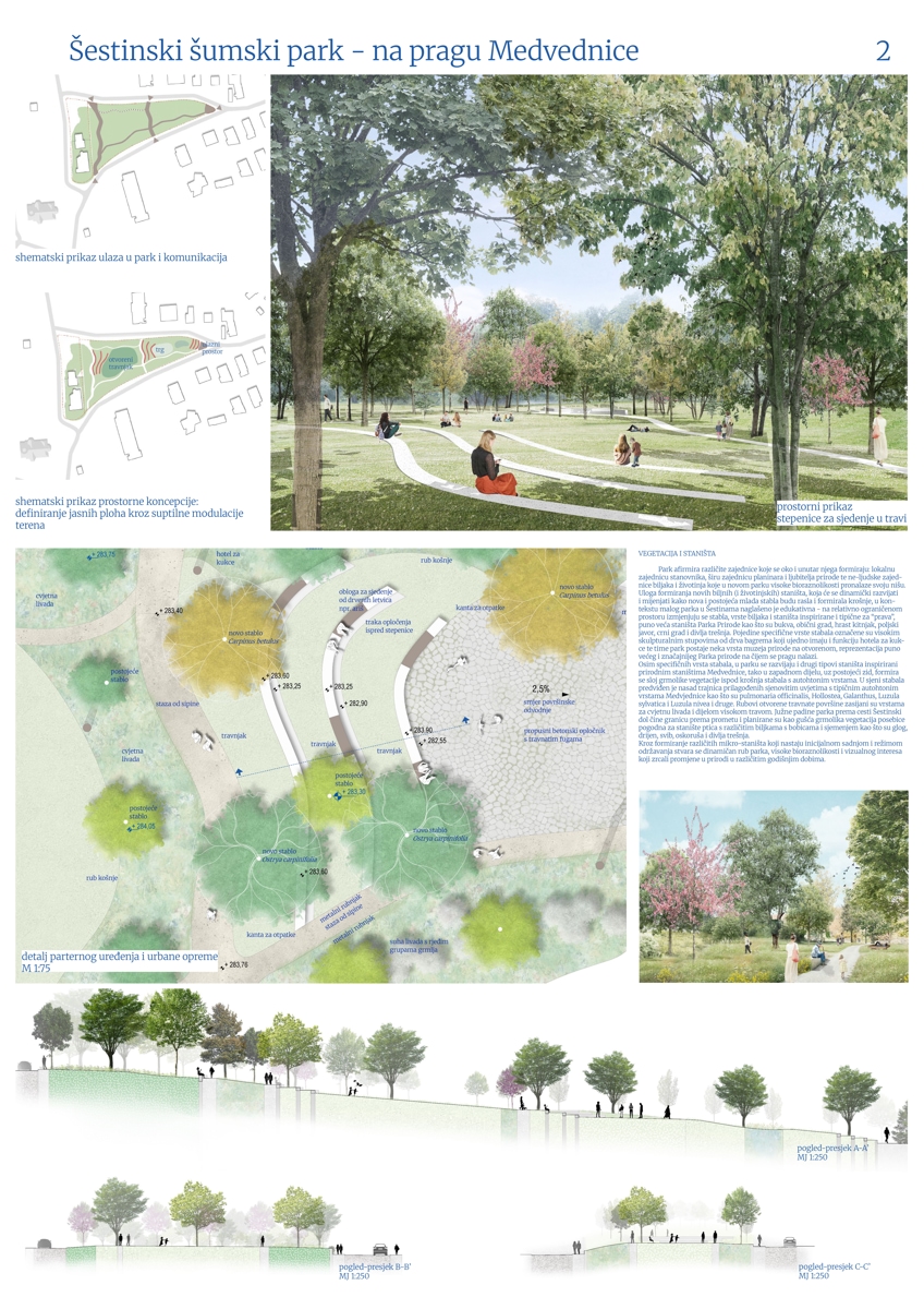 Prvonagrađeni rad je rad arhitektonskih ureda ve-la studio i MORPHAROS arhitekti, odnosno krajobraznog arhitekta Jana Vrabeca i arhitekta Borne Pavičića, a točna lokacija novog parka je trokut nasuprot igrališta MNK Šestine i crkve sv. Mirka i ski servisa Kecerin.