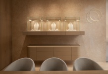 Hodam po prostoru i zamjećujem hrpu zanimljivih, funkcionalnih i dizajnerskih detalja. Slike Saše Šekoranje, mlade talentirane slikarice Diane Trohar, skrivena špajza s ulazom iza kuhinjskih elemenata, veliko formatna keramika od koje je napravljen kuhinjski otok, radna ploča i police, indukcijska ploča s integriranom napom upuštena u keramiku. Precizno, elegantno, fino… Kako li je ovo sve samo rađeno s preciznošću i pažnjom, pomislila sam.