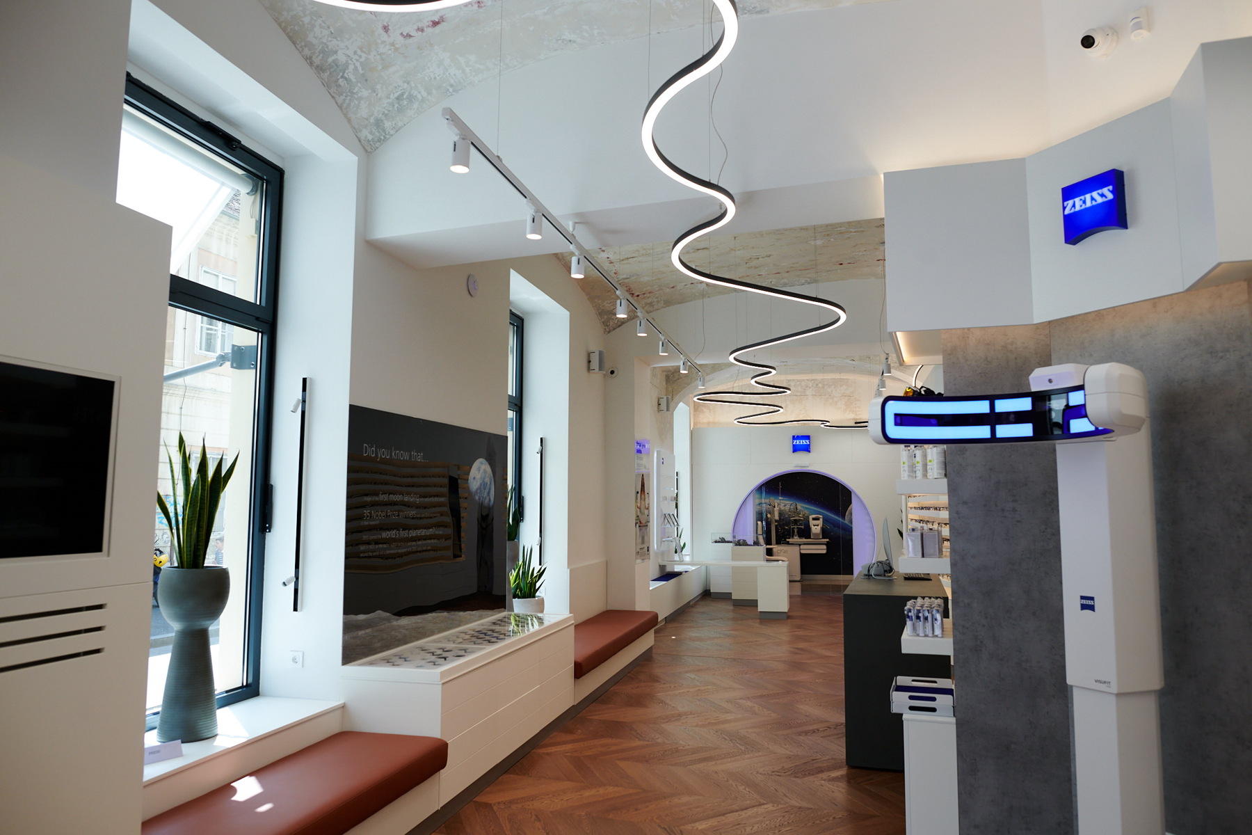 Interijer zagrebačkog ZEISS Vision Centera osmislio je njemački arhitekt Elmar Gauggel koji je napravio nekoliko divnih ZEISS centra diljem svijeta i za koje je dobio nekoliko međunarodnih nagrada, među njima i prestižnu Red Dot nagradu.